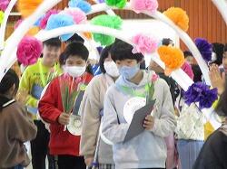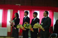 メダル、お花、メッセージを書いた色紙をプレゼントしました。