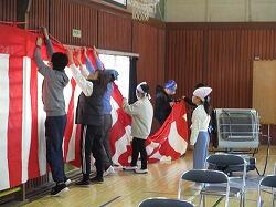 午後は、4~6年生の児童と教職員、PTA本部・学年委員の皆様で、会場準備を行いました