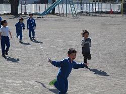 1、2年生は、体育の時間に長縄跳びにチャレンジ