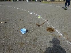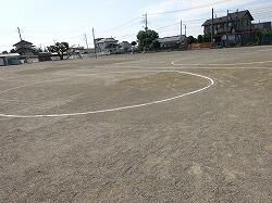学校施設課にお願いし、業者を頼み、グランドが平らになるように砂をまいてもらいました。砂をならした後は、ローラーで平らにし、ブラシをかけました。