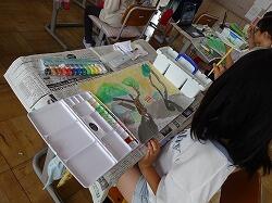 それぞれが、自分の思い思いの色づかい、筆づかいで、素敵な「木」を描いていましたみんな、とてもいい表情でした