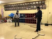 体育館の緞帳(どんちょう)が、かなり傷んでいたので、以前から、裁縫のお得意なアシストネットボランティアの皆さんにご相談してきました。どのようにしたら修繕できるか考えたり、色の近い布を探したりと、お骨折りをおかけしましたが、ボランティアでの修繕は困難だということになり、専門業者に修繕していただくことにしました。ようやく完成し、昨日の夕方取り付けが完了しました。費用は、PTA事業益金から、支出させていただきましたので、ご報告いたします。大変ありがとうございました。