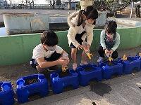 ▼担任の先生に、「土が乾いていたら、水をやるんですよ」と言われたそうで、「これは乾いているのか、湿っているのか…」と、土を触って考えながら、じょうろで水やりをしていました。