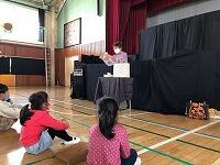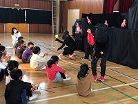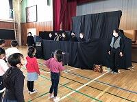 アシストネットボランティアの「ふれんどの会」の皆様による『人形劇観賞会』を3時間目に行いました。例年は、ふれあいルームで行っているのですが、今年度は体育館で、1・2・3年生が“密”にならないように間隔をあけて座って観賞しました。
