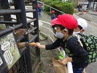 ▼一人ひとつえさの袋を抱えて、えさやりもしました。
