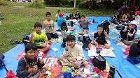 ▼なかよし班ごとに、どんな絵を描くか話し合います。