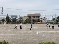 課外活動のハンドボールの練習をしています。4·5年生の中には、まだ少し疲れがとれていない子もいるようですが、みんな朝から集まって、頑張っています。