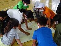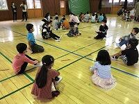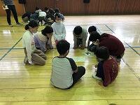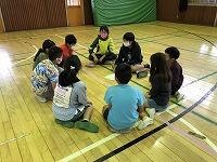 今日は、朝の活動の時間に、なかよし班ごとに体育館に集まって、その相談をしました。
