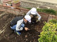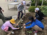 ▼ひまわりの苗の植え替えの仕方の説明を聞いて…