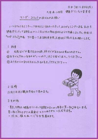うすむらさき色のプリントを持ち帰りますので、できる範囲で協力をお願いいたします。