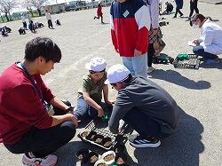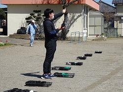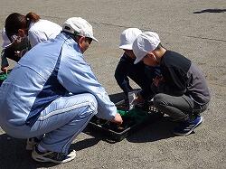始めに担当の先生のからやり方を教わり、その後はなかよし班の班長中心に種をまいていきます。1ポットに3粒ずつ、丁寧にうめていきました。上級生が下級生にやり方を教えながら、間違わないようにしっかりと協力して活動できていました。最後は、しっかり水やりも行いました。明日からの水やりも、交替しながら頑張りましょうね。