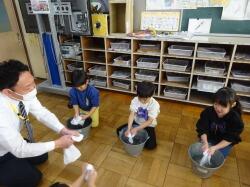 はじめに、何のためにおそうじするか、またそうじの仕方等を、動画でわかりやすく教えていただきました。その後、実際にやってみました。