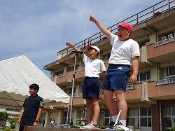 業間には、応援団長から、赤組・白組それぞれに、明日の運動会頑張ろうと、全校生に呼び掛けがありました