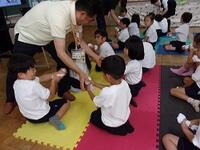 ほうき・ちりとりの使い方や雑巾の絞り方など、実技を交えて楽しく教えていただきました