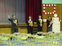 離任式が行われました。 投稿日時 : 2024/03/30 大宮南小管理者 お世話になった先生方とお別れする式が行われました。 校長先生より転出される先生方の紹介がありました。 5年生の代表児童から、先生方への感謝の気持ちを一つ一つの言葉に込めた『感謝の言葉』がありました。ありがとうございました。 先生方に花束を贈呈しました。 先生方お一人お一人からご挨拶をいただきました。 感極まって涙、涙です。 そして、お見送りです。 私たちは、お世話になった先生方への感謝の気持ちを心に刻み、新年度も前に進みます。 先生方、新しい学校で、健康に留意され、益々ご活躍ください。 本当にありがとうございました。 Tweet {{options.likeCount}} {{options.likeCount}}