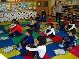 肉や魚などしか食べない赤鬼さん、ご飯やパン、麺しか食べない黄色鬼さん、野菜や果物しか食べない緑鬼さんの紙芝居を聞きました。