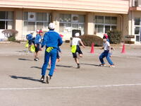 チームに分かれ、作戦タイム。タグを付け、自分のチームの宝(玉入れの玉)を取りにいきます一緒に体を動かし、楽しい時間を過ごすことができました。活動後「楽しかった~!」という声が聞こえました。