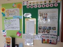 玄関~学年ごとの写真や子ども達のめあて、子ども達の載った新聞記事~