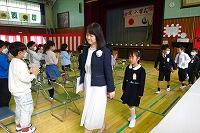 6年生代表児童よりお迎えの言葉がありました。『よろしくお願いします』と在校生と1年生であいさつを交わしました。