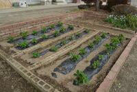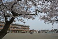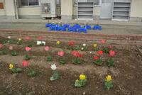 桜の花が満開を迎え、花壇のチューリップ、いちごも見事に成長しています