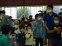 オープンスクール参加者の未就学児に、大宮南小のシンボル「ひまわり」の種を入れた、『手作りのマラカス』をプレゼントして、みんなで一緒に楽しく踊りました。