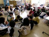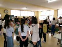 東と西の昇降口に分かれ、なかよし班ごとに集まりました。