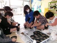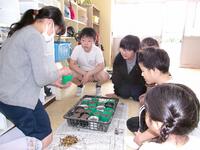 上級生が、下級生にやり方を丁寧に教えます