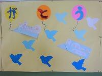 月曜の午後、ボランティアさんがお祝いのメッセージを掲示してくださいました。