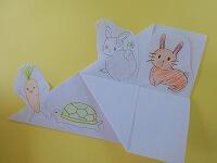 切り紙の子どもたちが、手をつないだり、楽しく遊んだり。大きい子も小さい子も、みんなでお祝いしているようすが伝わります