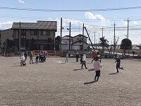 複数の学年の子どもたちが、仲よく楽しそうに遊んでいる、本校ならではの光景に、ほっこりした気持ちになって、カメラを向けました。よ~く見ると、ドッジボールとドッチビーが何個か飛びかっていましたよ!! なかなか、おもしろそうなルールを工夫していますね。
