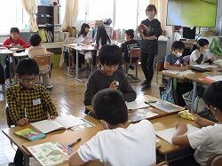 <2年生>鉛筆漢字の学習にチャレンジしていました。ピース漢字ドリルが終わったら、担任の先生に見てもらいます。音楽たくさんの漢字が書けるようになりましたね。花丸
