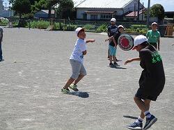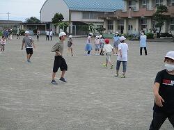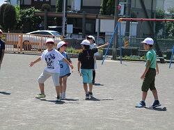 花丸2時間目終了後の休み時間興奮・ヤッター!わずかな時間ではありますが、4年生がクラス遊びをしていました。音楽学級で話し合って、遊びを決めたのでしょう。イベント「先生も入るんだよ!」とうれしいお誘いがニヒヒ子どもたちと先生の笑顔と歓声が夏空に爽やかに映し出されていました。イベントまるで素敵な映画のような場面でした。キラキラ