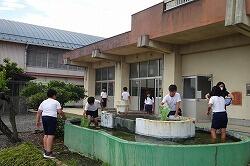 7/25に飼育委員会の6年生が、西昇降口前の池をきれいにしてくれました。汗・焦る汗・焦る