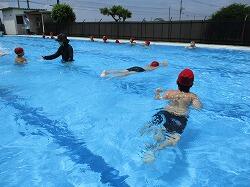 星1、2年生は、蹴伸びやバタ足にチャレンジしました。ピースみんな元気にチャレンジして、水に慣れていました。キラキラ