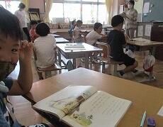王冠12345年生も集中して学習に取り組んでいます。花丸5時間目の様子です。笑う