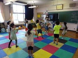 音楽に合わせて動いたり、ピタリと止まったりとアクティブな学習も。