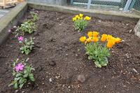 6年生が卒業して、寂しいですが、花壇の草花は、昨日よりきれいに花開いています
