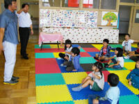 地震の後に起こる火災への対応として、煙体験ハウスで姿勢を低くし煙を吸い込まない訓練と、津波による被害に遭わないように、DVD「津波からにげる」を視聴しました。