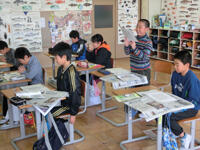 今日は下野新聞社の記者さんにきていただき、新聞のつくりかたの勉強をしました。社会の授業で勉強してあったので、みんなばっちりいい勉強になりました。実際に新聞を使って、見出しのつくりかたも体験しました。充実した2時間の体験授業でした。
