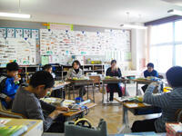 授業の後、給食を食べながらたくさん質問できました。