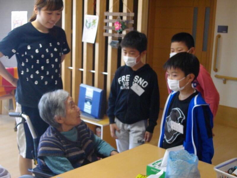 総合的な学習の時間「みんながくらしやすいまちに」の学習で「蔵の街ひまわり」訪問をしました。お年寄り達と様々な交流をする事ができました。