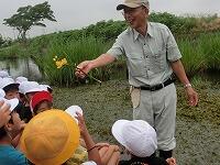 始めに赤渕川に生息する珍しい植物のコウホネについて説明していただきました。