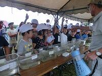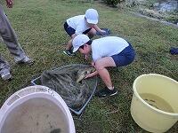 ここでとれた魚の一部は学校の池に持ち帰って育てています。