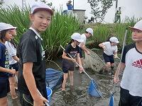 川に入り、生き物調査のためいろいろな生き物を探します!
