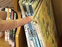 ▼本の真ん中あたりを、しっかりはさんで取り出してくださいね。そうすると、本が傷みません。