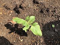 ひまわりの苗の近くに、葉っぱの破れたかけらが落ちています。そうか、昨日の雹(ひょう)が当たってしまったんだね~絵文字:困った 冷汗絵文字:困った 冷汗絵文字:泣く絵文字:泣く