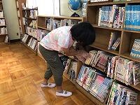 夏休み用の図書の貸出しを、今日と明日の二日間で行っています。クラスごとに図書袋を持って図書室へ行き、思い思いの本を3冊選んでいます。