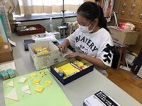 休み時間の図書室では、図書委員さんが図書室の先生と一緒に、いろいろな仕事をしています。返却されて消毒済みの本を戻す作業や、書架の整理、スタンプカードイベントの景品作りやスタンプ押しなど…短い時間を利用して、せっせと働いてくれていて、感心します。当番ではないのに、進んで仕事を手伝ってくれている人もいて、助かっています。ありがとうございます。