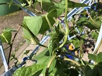 アサガオの葉っぱに、緑色の虫を発見!! アサガオの葉っぱと同じ色なので、先生はなかなか見つけられなかったのですが、「ほら、ほら~ここだよ!!」と、子どもたちに教えてもらって、カメラを向けました。すると、ぴょ~んっと跳ねて、地面に…「つかまっちゃうよ~、大変だ!!」と、逃げ出したのかな?それにつられて、子どもたちも、ぴょ~んっと、虫と一緒にはねて・・・本当に、子どもたちはかわいいです。「踏んだら、かわいそうだよ!!」という声も聞こえてきて・・・本当に、子どもたちはやさしいです。