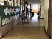 廊下でお待ちいただくときは、蒸し暑いと思います。隣の方と離れている場合は、マスクを外していただいても大丈夫ですので、どうぞ調節なさってください。